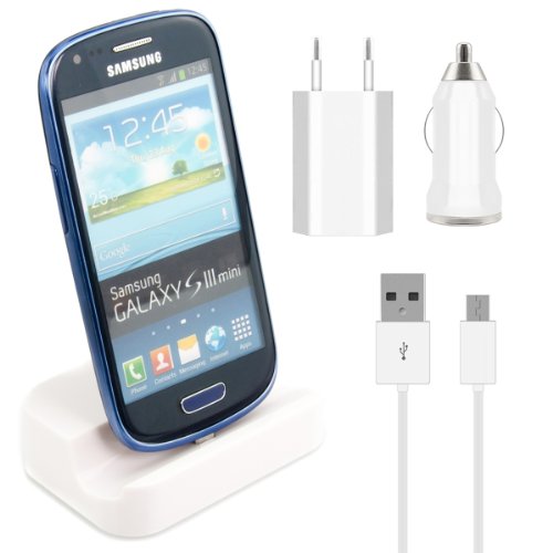 Station d'accueil avec la fonction de haut micro USB pour Samsung Galaxy S3 Mini i8190 Blanc + kit de chargement haut de gamme au design élégant signé