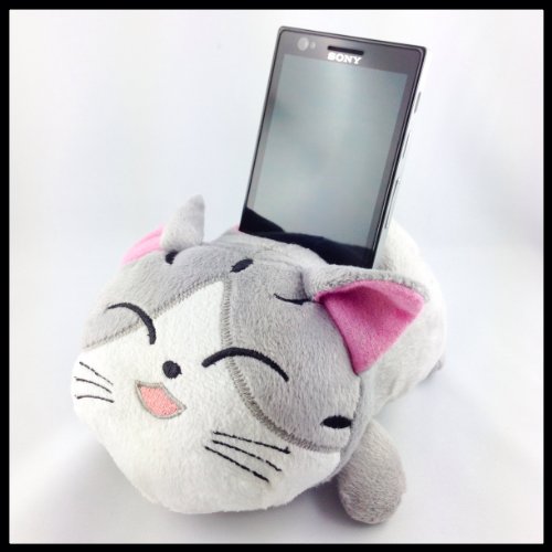 Support peluche pose téléphone portable - 4 modèles au choix (Chat gris)