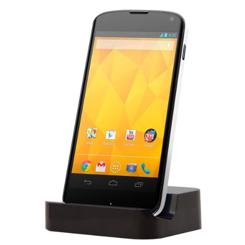 - Cette station d'accueil est idéale pour une utilisation sur un bureau. Votre LG Google Nexus 4 est bien en place dans le dispositif. Grâce au socle en caoutchouc, la station ne risque pas de glisser. Le coloris Noir métallique confère à la station d'accueil un aspect élégant.